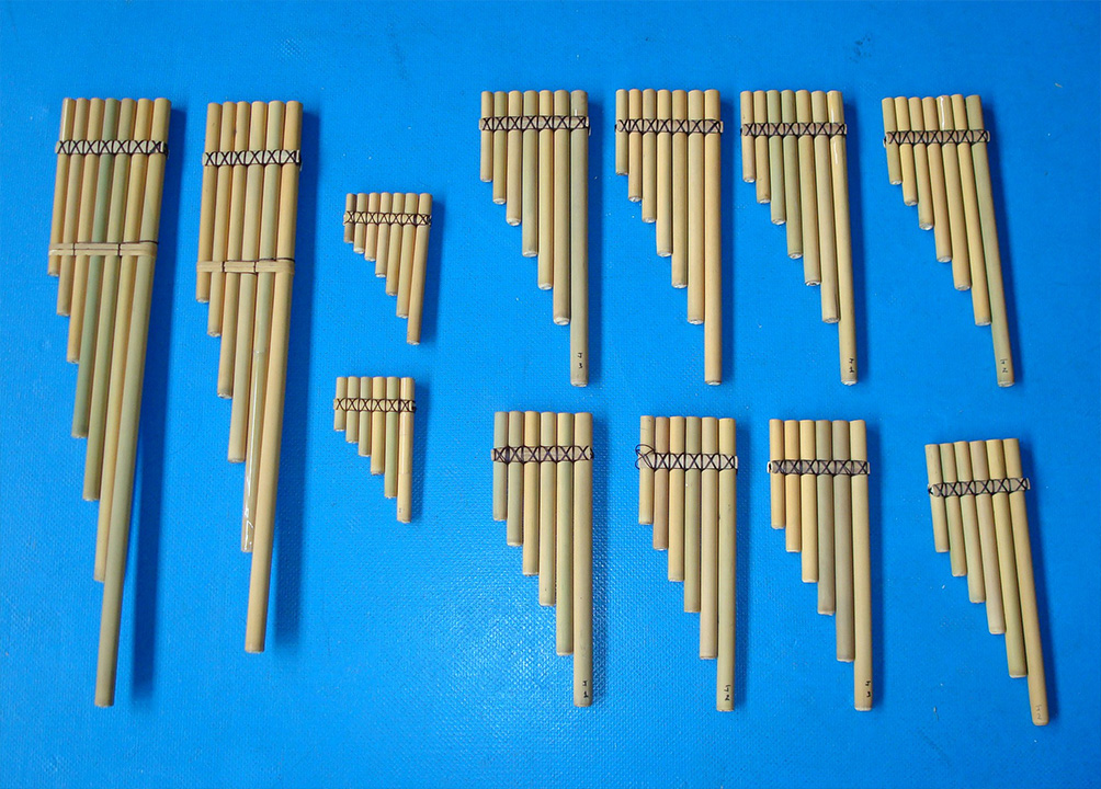 The use of wind instruments (aerophones) has a long history in the Andes, with archeological remains of flutes dating back more than four thousand years. Indigenous communities of the altiplano still play dozens of different wind instruments, including tarkas (block duct-flutes), kenas (end-notch flutes), and perhaps most famously, different types and sizes of panpipes such as the siku (see Figure 8.4). While it is standard practice in Western societies to combine different types of instruments in a single ensemble—such as a saxophone, trumpet, piano, bass and drums in a small jazz group—most indigenous wind instruments are performed exclusively in groups of similar instruments, accompanied by drums or other percussion. This practice derives in part from the association made between certain instrument types and the season in which they are played. Panpipes are considered a “dry season” instrument, for instance, and many believe that playing them during the growing season could attract a drought or frost. Even in places where such beliefs no longer hold, dry season instruments are simply not played with their wet season counterparts.