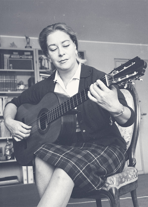 The most celebrated singer and songwriter of criollo music during this era was María Isabel Granda Larco, better known as Chabuca Granda (1920–1983; see Figure 8.10). Raised in an upper middle-class family in Lima, she formed a lifelong association with the city and its popular culture. Her most famous composition, the vals “La Flor de la Canela” (Cinnamon Flower), captures both the spirit of criolloismo (criollo-ism) in mid-twentieth century Lima, as well as the evocative and sensual poetry that was Granda’s trademark. “La Flor de la canela” offers a nostalgic and romanticized view of an older (and more exclusively criollo) Lima, evoking specific places such as the bridge that passes over the Rimac River in the center of the city. Granda personifies the city as a young, mulata woman with “jasmine in her hair and roses in her face,” a genteel allusion to the Afro-Peruvian influences on criollo music.